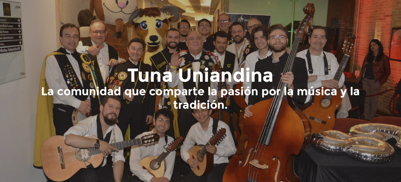 Desde 1969, la Tuna de Uniandinos ha sido símbolo de tradición, alegría y pertenencia. Fundada por estudiantes y egresados de Uniandes apasionados por la música, la Tuna ha representado con orgullo a la Universidad y a su comunidad dentro y fuera del país. Celebramos la vida a través de la música, el canto y la camaradería, preservando una expresión cultural que une generaciones uniandinas y proyecta nuestra identidad con serenata y entusiasmo.